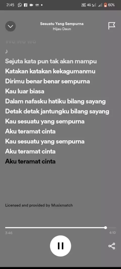 Membalas @warakilovers Done ya kak, thanks for the request.... Soo let's sing together with Hijau Daun Band - Sesuatu Yang Sempurna....... #hijaudaun #hijaudaunband #sesuatuyangsempurna #nyanyibarengyuk #spotipy #spotipy2023 # #sounds #liriklaguviral #songviralon #bismillah #samlanfamily #adharizqaridho #fulllirik #MusikStory #trendliriklagu #bestsongever #MyFavouriteLyrics #RecommendedSongs #SongsLyrics #popsong #songlyrics