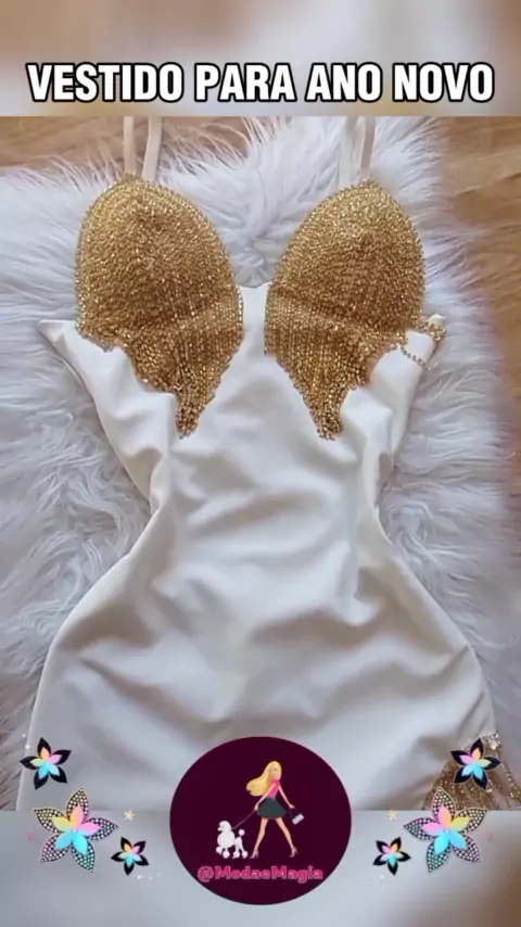 vestido branco com detalhes dourados para usar no ano novo #roupasfemininas #look #anonovo #fy #looks