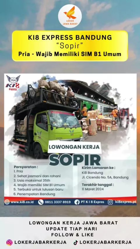 Lowongan Kerja Jawa Barat Terbaru. Posisi: Sopir Lokasi: Bandung#lokersopir#lokersupir#lokerdriver#lokerbandung#lokerbandungterbaru#lokerbandung2024#infolokerbandung#carikerja2024#lokerjabar#lokerjabar2024#lokerjawabarat#lokerjawabaratterbaru#lowongankerja#lokerjabarupdate#lowongankerja2024#loker2024#infolokerjabar#lokersmp#lokersma#lokersmaterbaru#lokersmk#lokersmkterbaru#lokersmasmk