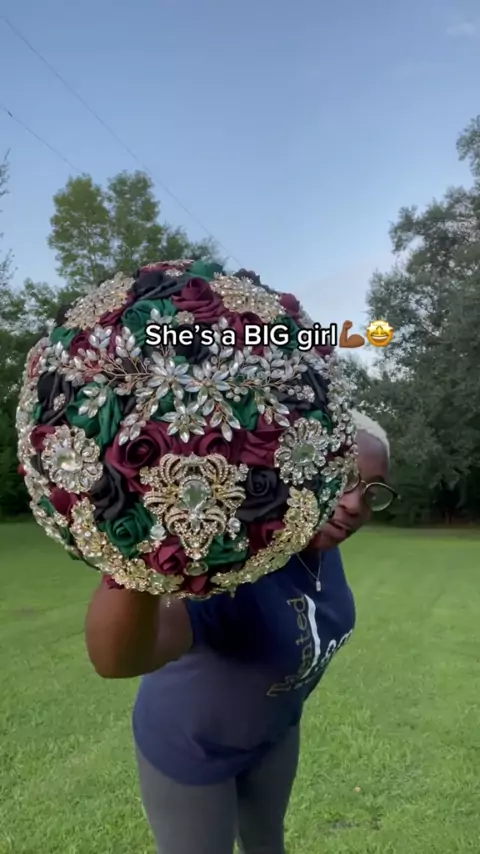 The big one….💪🏾#monicasimsvividdecor #damnnear #bouquet #ItsGreatOutdoors #blingbling #wedding #broochbouquet #black #blackweddingtheme #blackweddings