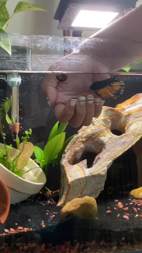 Just rinse your hands (no soap) first! #bettabonding #bettafish #fishtankdecor #bettafishtank
