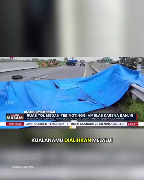Ruas Tol Medan–Tebing Tinggi di KM 41+600 ambles setelah tergerus banjir Sungai Batu Giging pada Jumat siang, memutus akses kendaraan menuju Medan. Petugas Jasa Marga Kualanamu dan Satlantas Polresta Deli Serdang langsung melakukan rekayasa lalu lintas, mengalihkan kendaraan melalui Gerbang Tol Kemiri, Kualanamu, dan Lubuk Pakam pada Jum'at (28/11/2025). Ikuti perkembangan berita terbaru lewat pantauan langsung hanya di BTV. Jangan lupa scan ulang TV Digital / Set Top Box kamu: • 44 UHF untuk B...