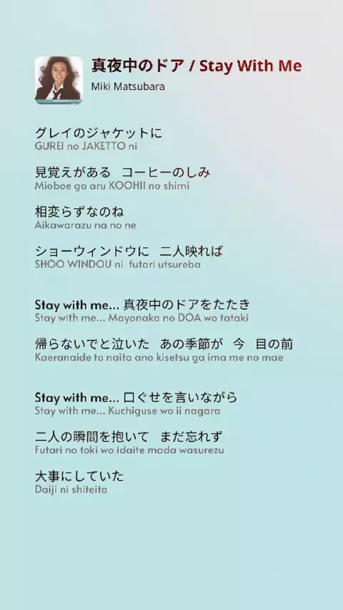 Miki Matsubara - 真夜中のドア / Stay With Me#mikimatsubara#staywithme#真夜中のドア#japanesemusic##lyrics#liriklagu#anime#おすすめ#歌詞動画#音楽#nostalgia