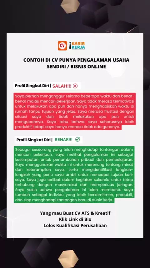 Deskripsi diri buat si cv jika kamu punya usaha.. #cvatsfriendly #tipscvprofesional #tipsinterviewkerja #bikincvkreatif