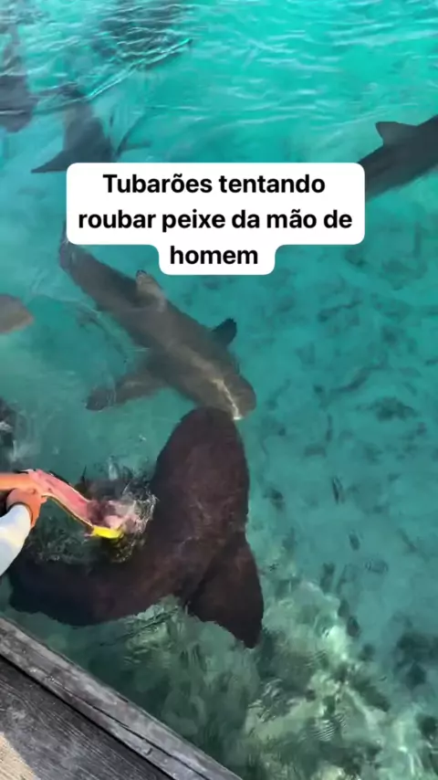 Tubarões tentando roubar peixe da mão de homem #BomPraKAI #vidaanimal #amoranimal #mundoselvagem #bomprawai