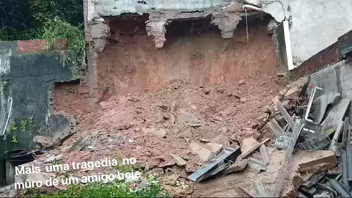 Muro cai por causa da chuva veja o final