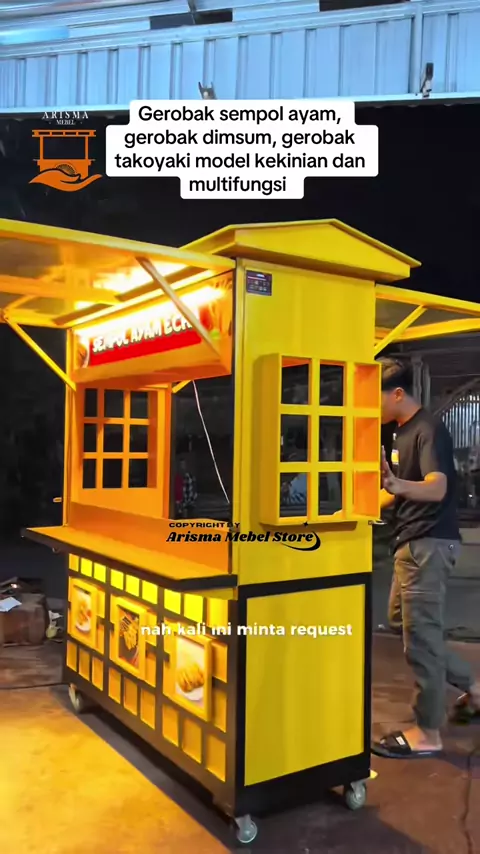 Gerobak jualan sempol ayam, jualan dimsum atau jualan takoyaki bisa pake model seperti ini ya bosku. Selain itu juga bisa menyesuaikan dengan jualan teman teman ya. Bisa dicustom sesuai dengan keinginan dan bisa custom warna ya. Info selengkapnya hubungi admin guys, link ada dibio yaa#gerobakkekinian#gerobakusaha#gerobakkayu#gerobaksempol#gerobakdimsum