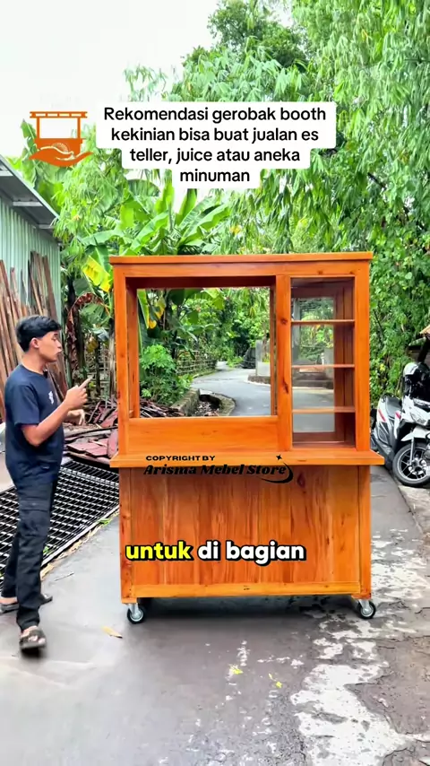 Rekomendasi gerobak jualan minuman dan makanan model booth nih best, Ini rekomended banget yang mau jualan jus, aneka es teller dan lainnya ya Bisa juga dicustom sesuai keinginan ya. Info selengkapnya chat kami, link ada dibio#boothkekinian#gerobakkayu#gerobakkekinian#gerobakusaha#gerobakcustom