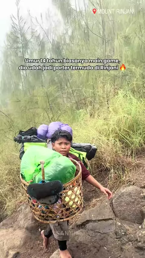 Umur 14 tahun, tapi sudah jadi porter termuda di Rinjani πͺπ₯ #PorterRinjani #YoungAndStrong #MountRinjani #RinjaniTrek #sanrinjanitrekkingguide πβοΈποΈ