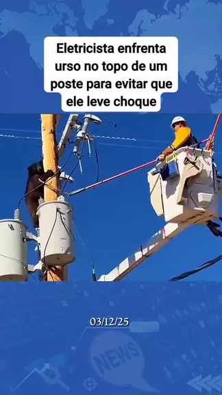Eletricista enfrenta urso no topo de um poste para evitar que ele leve choque. #ultimasnoticias