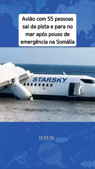 Avião com 55 pessoas sai da pista e para no mar após pouso de emergência na Somália. #ultimasnoticias