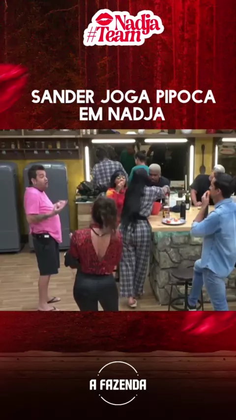 Falta de respeito total, ao invés de dialogar Sander preferiu desdenhar de Nadja junto com seu “grupinho” jogando pipoca nela. #TeamNadja #AFazenda #AFazenda15 #Kwai #ProvaDoFazendeiro