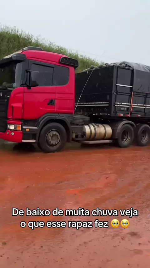 Chuva forte veja esse rapaz 😳😳#dança #chuva #caminhao #caminhoneiro