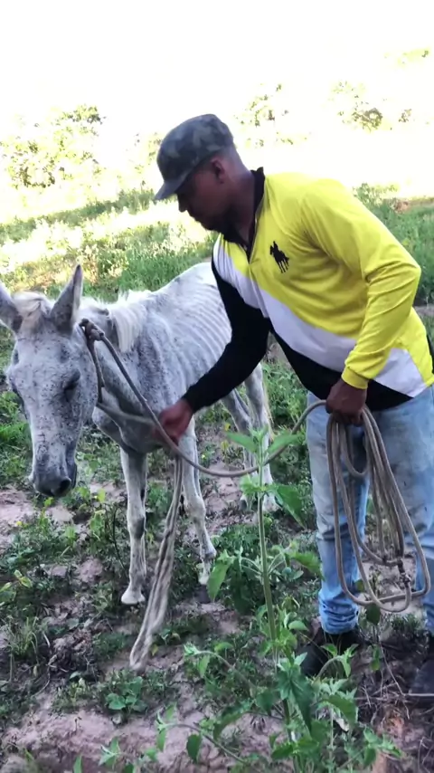Pegando o burro para fazer o tratamento hoje