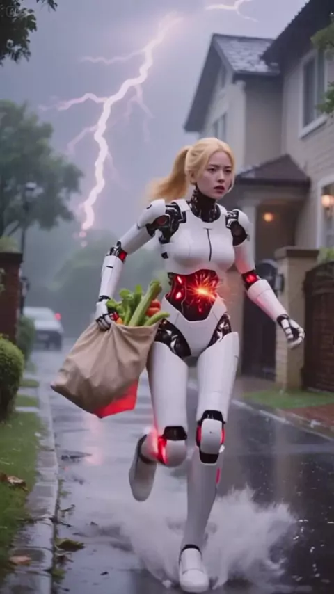Mama androide y papá humano cuidando a su baby humano y dónde una falla electrónica pone en peligro a mamá androide #fyp #parati #ia #elmundoencamara #ai