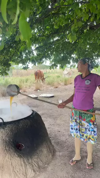 Minha mãe batendo o tacho pra fazermos tijolo 😍