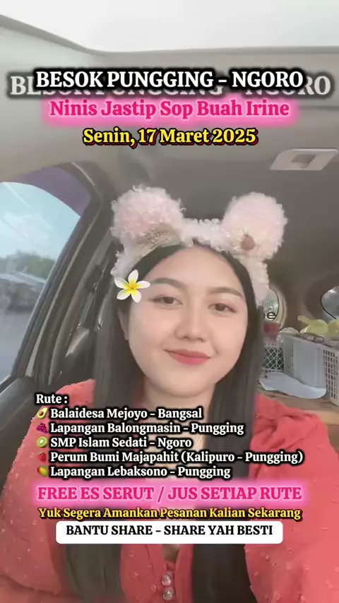 BESOK RUTE OTR BANGSAL - PUNGGING - NGORO ✨ FREE ES SERUT / JUS SETIAP RUTE⁉️ SENIN, 17 MARET 2025 1. BALAIDESA MEJOYO - BANGSAL 2. LAPANGAN BALONGMASIN - PUNGGING 3. SMP ISLAM SEDATI - NGORO 4. PERUMAHAN BUMI MAJAPAHIT (KALIPURO - PUNGGING) 5. LAPANGAN LEBAKSONO - PUNGGING @Sop buah irine. @sop buah irine @Sop buah irine @mas rush @ninis2_jastipirine @ninisjastip3#saladbuahirine#sopbuahirine#sopbuahirineinpirasi#sopbuahirineviral#jastipsopbuahirine#jastipsaladbuahirine#bakaranirine#bak...