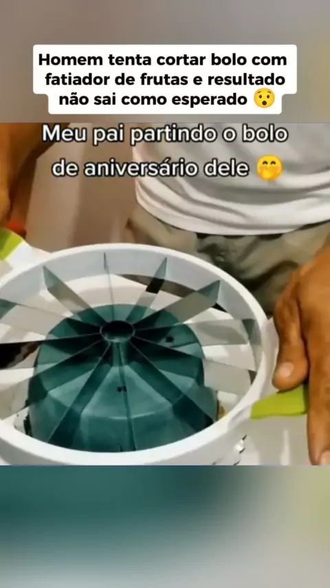 homem tenta cortar bolo com fatiador de frutas e o resultado não sai como esperado #Notícia #noticias #bolo #fatiador