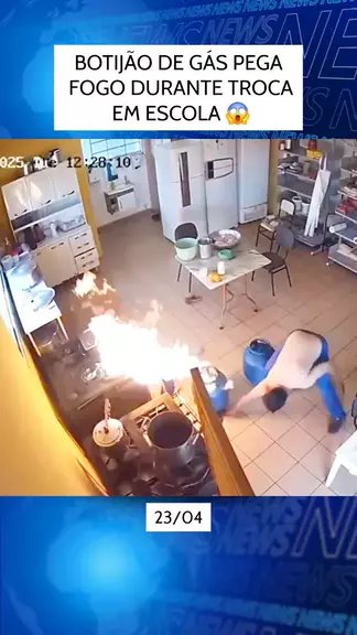 Botijão de gás pega fogo durante troca em escola #ultimasnoticias #noticias