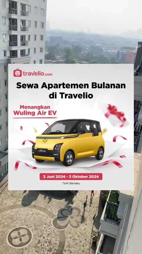 Travelio lagi ada promo sewa bulanan bisa menang mobil wuling air ev #ApartemenbyTravelio #SewadiTravelioMenangWuling