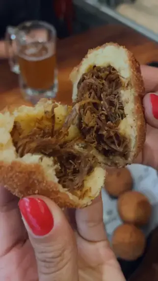 Um dos melhores petiscos que já provei nessa cidade! 📌Bolinho de Aipim com carne seca. Pensa um trem que vem bem recheado, acompanha um molho de alho maravilhoso! #montesclaros #bar #criadordeconteudo #dicas