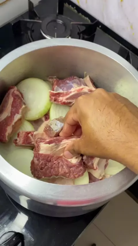 Costela na Cebola Ingredientes: • 1 kg de costela ponta de agulha • 3 cebolas grandes (ou a quantidade ideal para fazer as camadas) • Sal a gosto • 1 colher de chá de páprica doce • 1 linguiça calabresa • Coentro a gosto #costela #receita #receitas