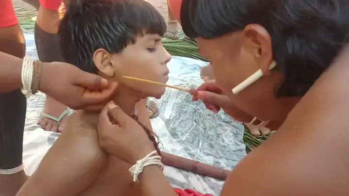 Furação de orelha do meu filho Levi Orebewe, passando da fase de adolescência para a fase adulta, agora ele já é homem. Étnia Xavante - MT