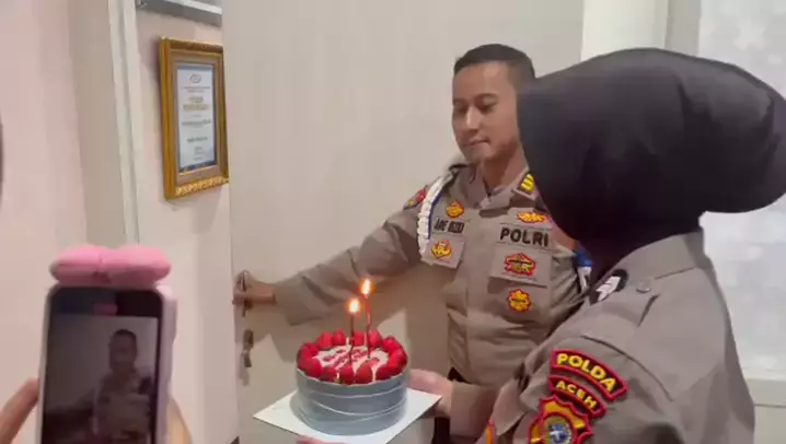 Kabidpropam beserta staf lainnya memberikan kejutan ulang tahun kepada Kasubbid Paminal Bidpropam Polda Aceh. #viral
