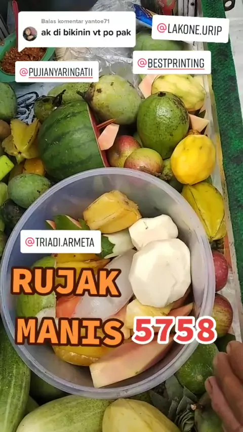 Balas @yantoe71#pakazis#bakulrujaklagian#rujakmanispapuma#papumajember#idola#jember#buahbuahan#pelem#apel#nanas#semangka