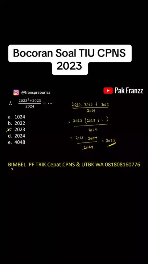 Bocoran Soal TIU CPNS 2023 #CPNS2023 #P3K #pppk2023 #SKDCPNS2023 #SNBT2024 #skd2023 #bimbelCPNS #utbk2023 #pakfranzz #ujianSMP #skdcpns #BUMN #bumn2024 #TIU #TIUCPNS #tiucpns2023 #TWK #twkcpns #twkcpns2023 #snbt2023 #snbt #ujiansekolah #utbk2024 #tpsSNBT #tkdbumn #tiu #tiu2023 #tkd #tpsutbk