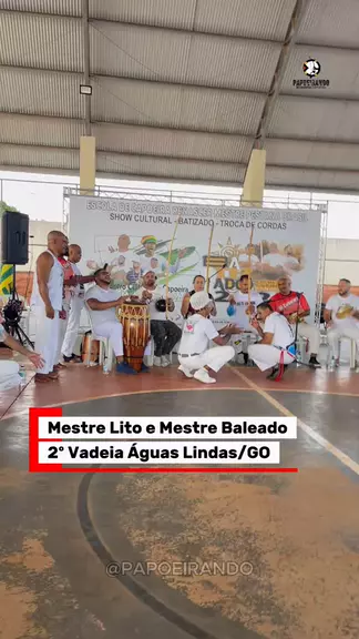 Mestre Lito e Mestre Baleado vadeando com mandinga e alegria no Vadeia Águas Lindas–GO, evento organizado pelo Mestre Pestana! Um encontro de energia boa, troca verdadeira e capoeira vivida dentro da roda. #Papoeirando #Capoeiragem #Capoeira #Axé