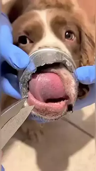 o cãozinho enroscou o focinho na lata e ela está salvando ele ele também enrolou a língua dele na lata e ela está tirando a língua dele que estava enroscada #cachorro