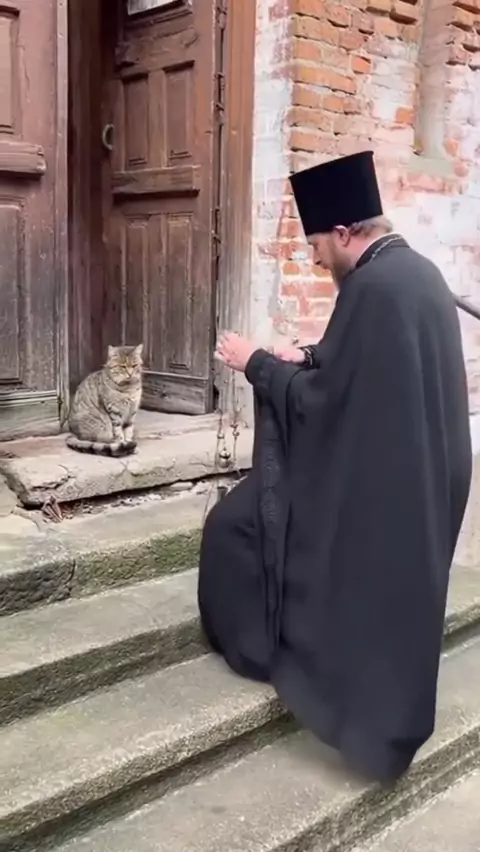 Gato bravo com o padre