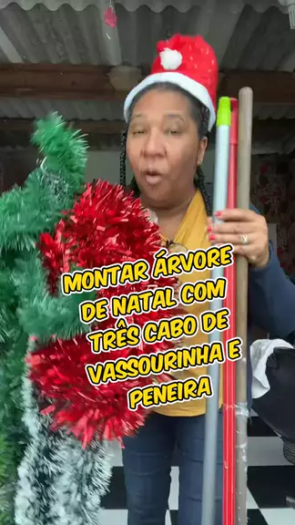 Como montar sua árvore de Natal com três cabo de vassoura em uma peneira