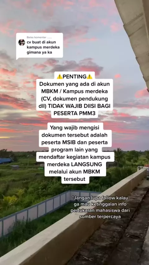 Membalas @....... Yang kesulitan buat daftar PMM3 boleh langsung ikutan kelas bimbingan Pendaftaran pertukaran mahasiswa yang mimin buka yaa, info pendaftaran di vt yang mimin sematkan, Jangan lupa follow karena mimin upload tentang pertukaran mahasiswa setiap hari, semangatt terus pejuang pmm3ππ»ππ»#Pengabdikampusmerdeka#kampusmerdeka#kampusmerdeka2022#kampusmerdeka2023#kelasbimbinganpmm#kemendikbud#pendaftaranpertukaranmahasiswa#allpraisestoallah#ptn#Tips#PMM3#sosialisasipmm3#pemilihan...