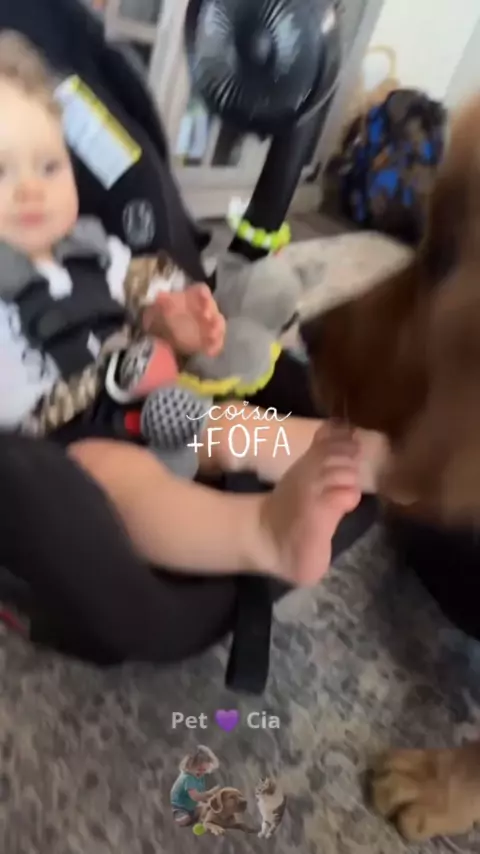 Bom dia + fofo 🥰🐕👶 #bomdia #serfeliz #crianças #amopet #goldenretriever