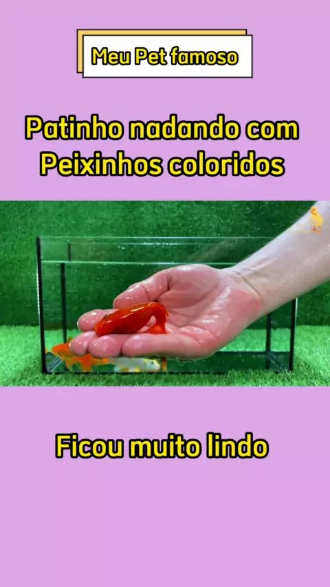 Patinho nadando em um aquário cheio de peixinhos coloridos #pets #fy #other #pato,peixe #nadar