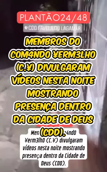 Membros do C0m4nd0 ¥erm3lh0 (C.¥) divulgaram vídeos nesta noite mostrando presença dentro da Cidade de Deus (CDD). #ceara3xmaisforte #fortalezadomedo #últimasnotícias #ultranotícia #notícia