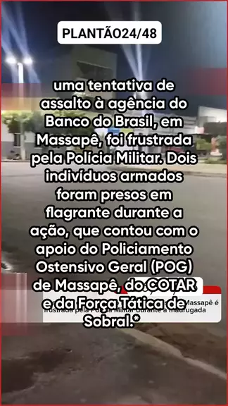 madrugada deste domingo (26), por volta das 3h, uma tentativa de assalto à agência do Banco do Brasil, em Massapê, foi frustrada pela Polícia Militar. Dois indivíduos armados foram presos em flagrante durante a ação, que contou com o apoio do Policiamento Ostensivo Geral (POG) de Massapê, do COTAR e da Força Tática de Sobral.* #ceara3xmaisforte #noticiasdeultimahora #últimasnotícias #flagrante #assalto
