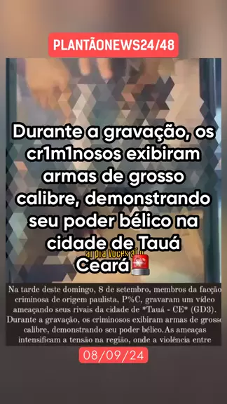 Na tarde deste domingo, 8 de setembro, membros da facção criminosa de origem paulista, PCC, gravaram um vídeo ameaçando seus rivais da cidade de *Tauá - CE* (GDE). Durante a gravação, os criminosos exibiram armas de grosso calibre, demonstrando seu poder bélico. As ameaças intensificam a tensão na região, onde a violência entre facções tem se tornado mais frequente. #flagrante #notícia #ultranotícia #últimasnotícias #noticiasdeultimahora