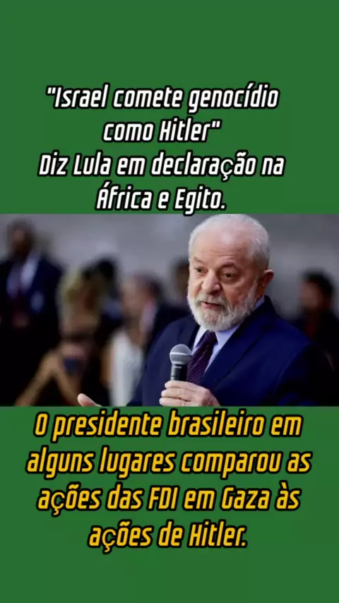Israel comete genocídio como Hitler O presidente brasileiro em alguns lugares comparou as ações das FDI em Gaza às ações de Hitler contra os judeus na Segunda Guerra Mundial. Após essas observações, o embaixador brasileiro em Israel foi convocado para uma reprimenda. #CrescerNaFamília #EstrelaDeFamília #noticias #ultimasnoticias