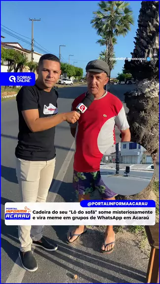 Reportagem Exclusiva com “Seu Lô do Sofá” falando do sumiço da Cadeira. Na manhã desta segunda-feira, 2 de junho de 2025, um fato inusitado movimentou os grupos de WhatsApp de Acaraú e região. O conhecido “Seu Lô do Sofá”, famoso na cidade por reformar sofás, cadeiras, bancos de carro, de moto e outros estofados, teve uma cadeira misteriosamente levada da avenida José Giffoni da Silveira, no bairro Rodagem, sede do município. Segundo relatou Seu Lô, ele havia finalizado a reforma de uma cadei