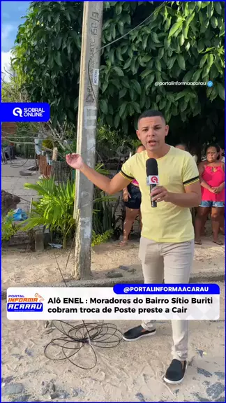 A equipe de reportagem do @portalinformaacarau , liderada pelo repórter @lailton_silva_reporter , foi acionada na tarde desta sexta-feira, 28 de março de 2025, por moradores das ruas Francisco Felipe Rocha e Maria Valéria Vitoriano, no bairro Sítio Buriti, na sede do município de Acaraú. Os residentes alertam sobre o estado crítico de dois postes de energia elétrica na localidade, que apresentam risco iminente de queda. Segundo os moradores, os postes estão em situação precária, sustentados ape More