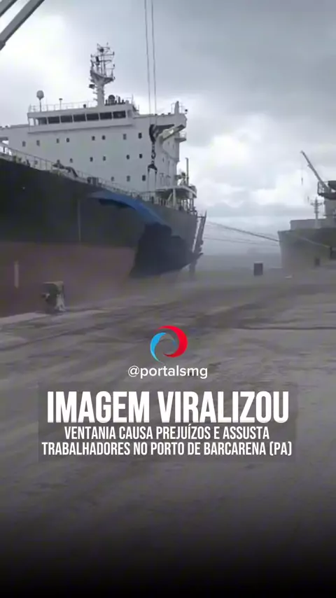 ⚠️ VIRALIZOU Na tarde desta segunda-feira (26), uma ventania repentina causou danos materiais em navios atracados no cais da Companhia Docas do Pará (CDP), em Vila do Conde, no município de Barcarena. De acordo com relatos de trabalhadores que estavam no local e registraram o momento em vídeo, a forte corrente de vento se formou de maneira inesperada. O fenômeno assustou os funcionários que atuavam no porto, não houve feridos. 📲SIGA @portalsmg para mais informações! #PortalSmg #Viral #Trendin