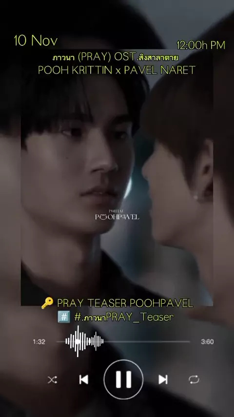 ภาวนา (PRAY) OST.สิงสาลาตาย POOH KRITTIN x PAVEL NARET 📅 10 NOV 🕚 12:00 P.M/GMT+7 📍YouTube : CHANGE2561 🔑 PRAY TEASER POOHPAVEL #️⃣ #.ภาวนาPRAY_Teaser 📈 START TREND 11:45h A.M/GMT-3 #ppoohkt #pavelphoom #poohpavel #BabeHooPers