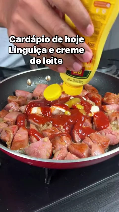 #Cardápio de hoje linguiça e creme de leite