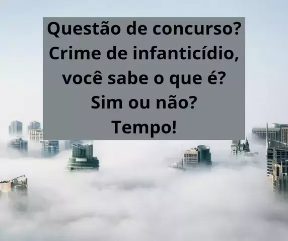 Questão de concurso? Crime de infanticídio, você sabe o que é? Sim ou não? Tempo! Resposta! vou explicar. Infanticídio Artigo 123 - Matar, sob a influência do estado puerperal, o próprio filho, durante o parto ou logo após: Pena - detenção, de dois a seis anos. O que é estado puerperal? é o período fisiológico e psicológico transitório após o parto, retorna ao estado pré-gravidez. Dura, geralmente, de 45 a 60 dias, envolvendo intensas alterações físicas e emocionais