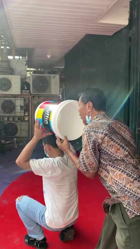 nyanyi pakai mic? udah biasa. nyanyi pakai kaleng cat baru luar biasa 🤭😂 #kocak #produklokal #wecoloreverything # #trending #trendingdi #catlokal