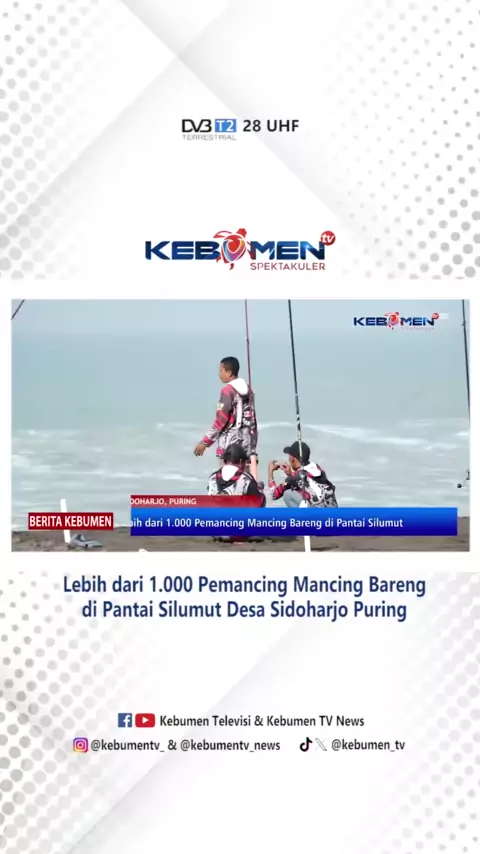 Lebih dari 1.000 Pemancing Mancing Bareng di Pantai Silumut Desa Sidoharjo Puring Berita Kebumen Edisi Senin, 23 Juni 2024 Lebih dari seribu pemancing dari berbagai daerah di Pulau Jawa, mancing bareng di Pantai Silumut Desa Sidoharjo, Kecamatan Puring. Agenda tahunan ini, sekaligus menjadi ajang mengenalkan objek wisata di Kabupaten Kebumen. Saksikan Berita Kebumen setiap hari pukul 10.00 dan 17.00 WIB hanya di Kebumen TV Ch Digital 28 UHF/ 530 MHz dan Live Streaming Facebook Kebumen Televisi....