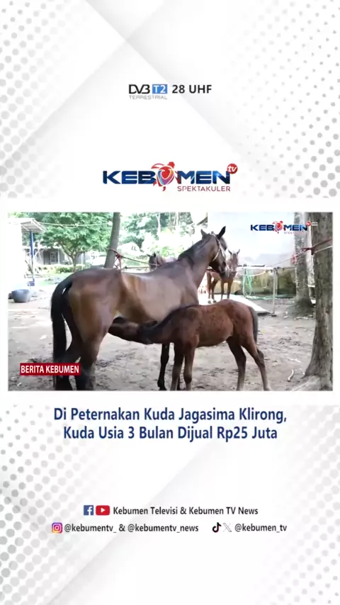 Peternakan Kuda di Jagasima Klirong Mampu Kirim Kuda ke Seluruh Indonesia Berita Kebumen Edisi Selasa, 27 Februari 2024 Warga Desa Jagasima, Kecamatan Klirong, sukses beternak kuda dengan anakan kuda yang dihasilkan, dikirim ke berbagai wilayah di Indonesia. Di sini, kuda dengan umur 3 bulan dijual 25 juta rupiah. Saksikan Berita Kebumen setiap hari pukul 10.00 dan 17.00 WIB hanya di Kebumen TV Ch Digital 28 UHF/ 530 MHz dan Live Streaming Facebook Kebumen Televisi. Ikuti media sosial kami: - I...